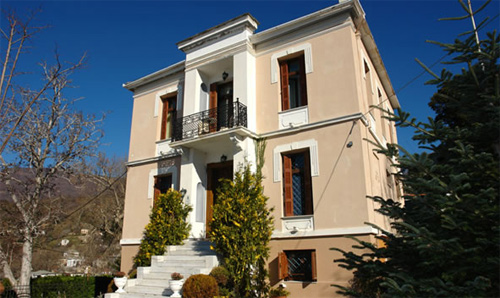| The “Vogiatzopoulou” mansion is a three storey, neoclassic, magnificent building, next to the central road, with two entrances which offers majestic view to the sea. |